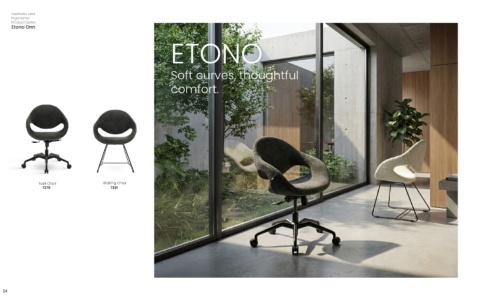Aesthetic and Ergonomic Product Series Etono Onn ETONO Soft curves, thoughtful comfort. Task Chair Waiting Chair 7278 7391 24